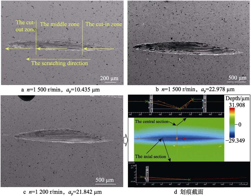 現象與仿真吻合,並(bìng)在劃痕邊緣和尾部(bù)均出現了“飛(fēi)邊”現象。